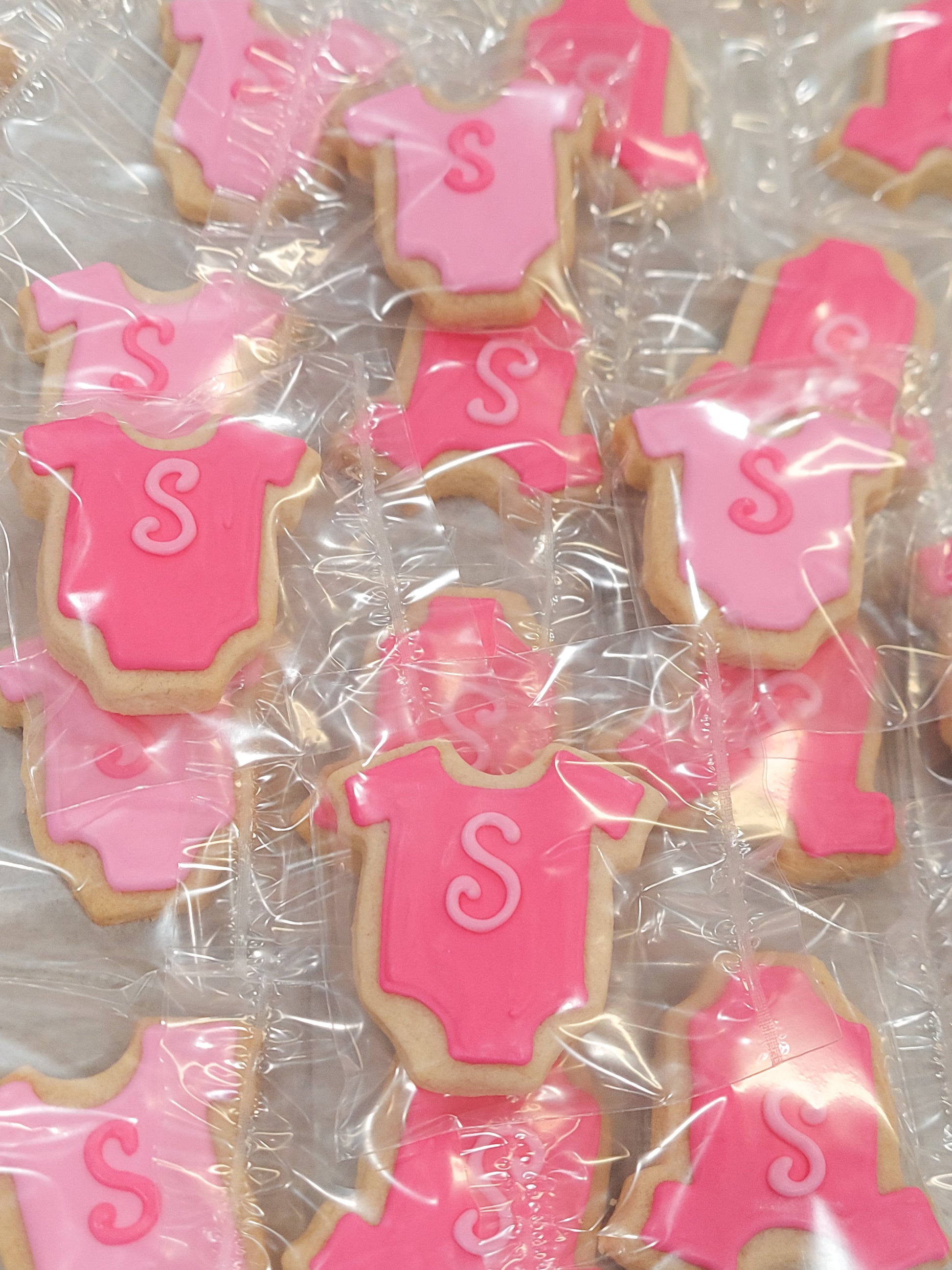 They are the cutest little onesie cookies with a pretty initial on them. I cannot wait to serve them at my daughter's baby shower. They are individually wrapped, so I know they are going to be fresh and delicious. Thank you so much!